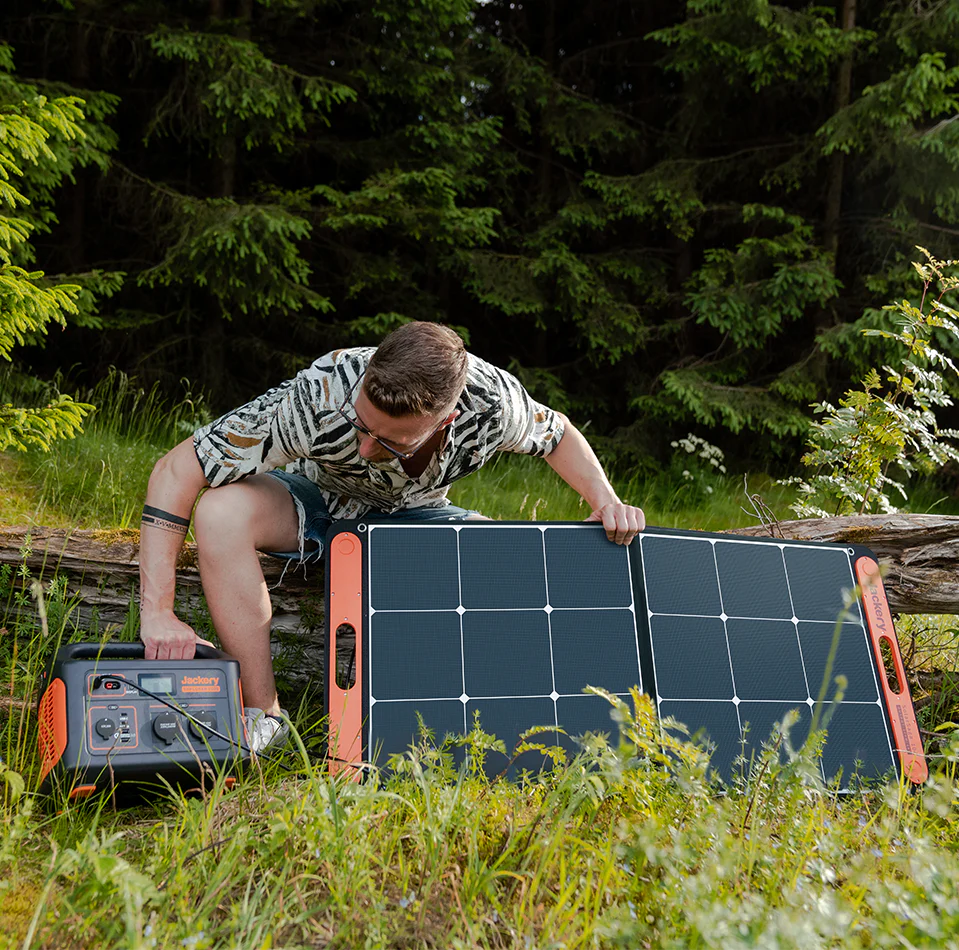 Explorer 1000 può essere ricaricato completamente rapidamente in 8 ore collegando due pannelli solari SolarSaga 100W con un cavo adattatore (pacchetto incluso).
